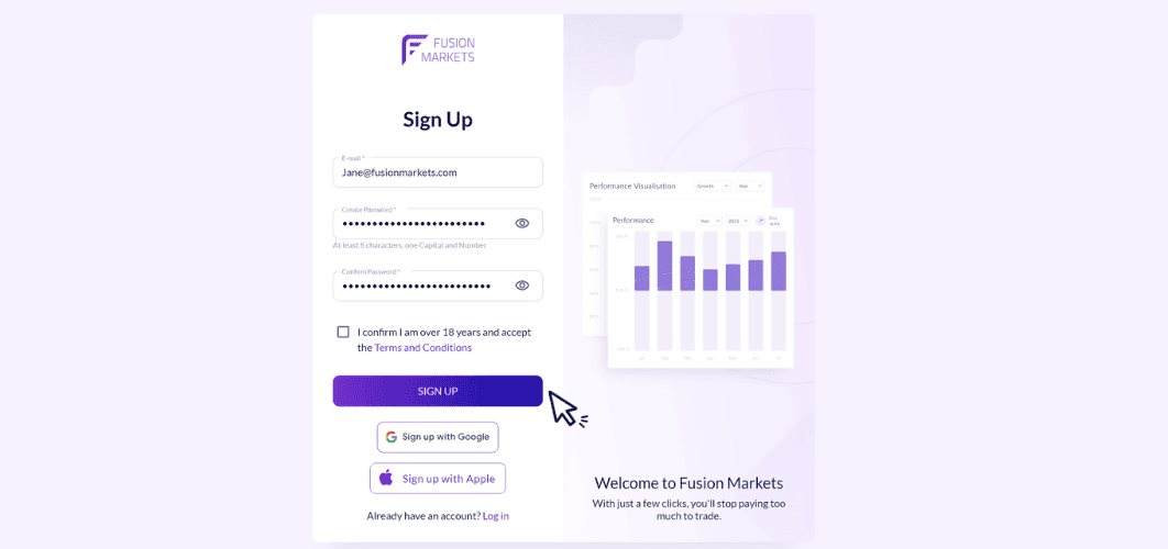 Follow our step-by-step guide below to open a Demo account with Fusion Markets. Harness the potential of our advanced trading tools and real-time market data, empowering you to execute trades with precision and confidence. Test your strategies, fine-tune your decision-making skills, and discover the perfect approach that suits your trading style, all without risking a single penny.